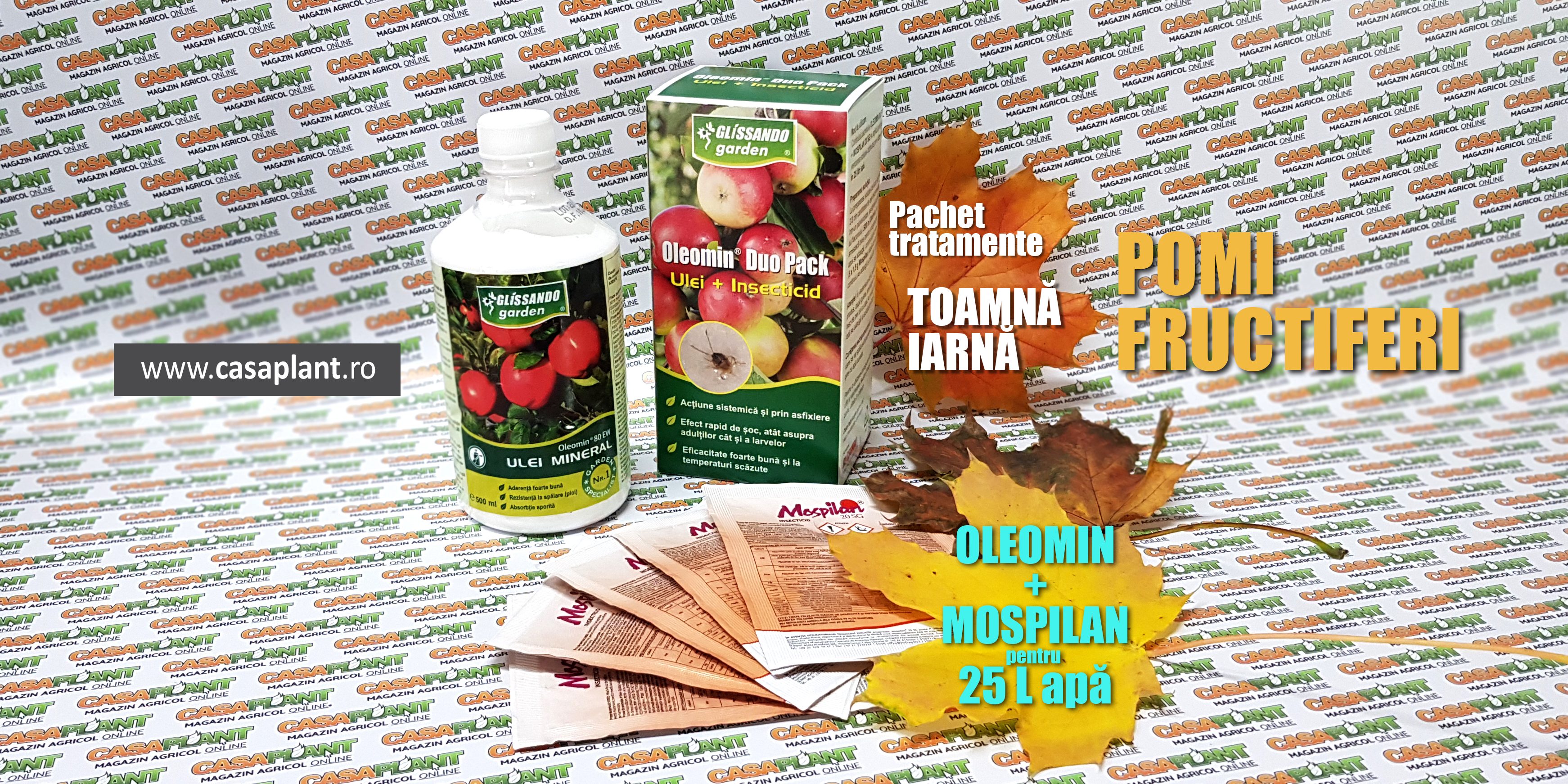 Conținutul pachetului OLEOMIN 80 EW + MOSPILAN 20 SG se aplică prin pulverizarea soluției obținute prin dizolvare în 25 litri apă.